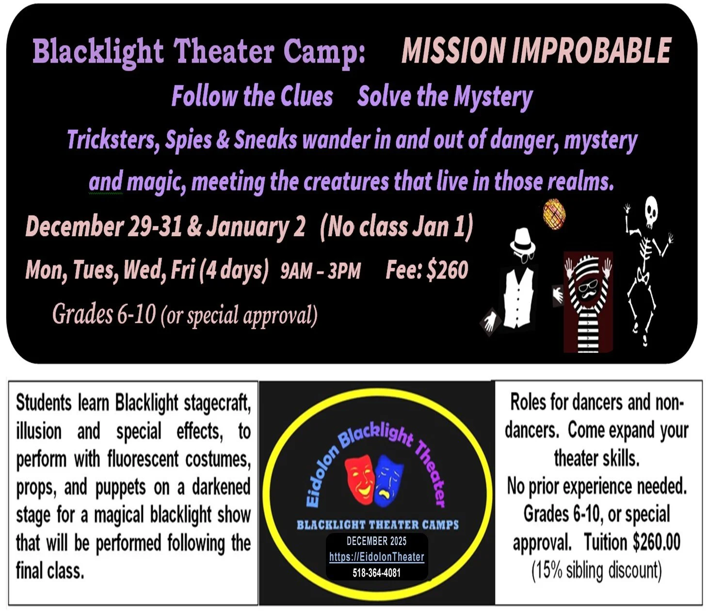 bringing the magic of black light theater from the capitals of Europe to the Capital of New York State.